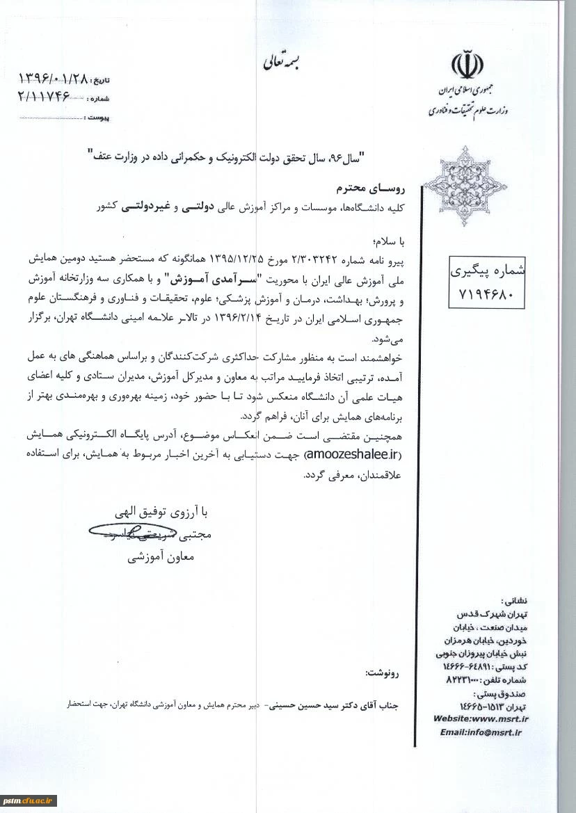 امتیاز دهید : اطلاعیه دومین همایش ملی آموزش عالی ایران (ویژه اعضای هیات علمی)2 چهارشنبه 6 اردیبهشت 1396 ساعت 11:35