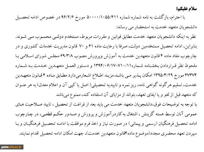 امتیاز دهید : بخشنامه ادامه تحصیل دانشجو معلمان در مقاطع تحصیلات تکمیلی 2 شنبه 31 تیر 1396 ساعت 16:42