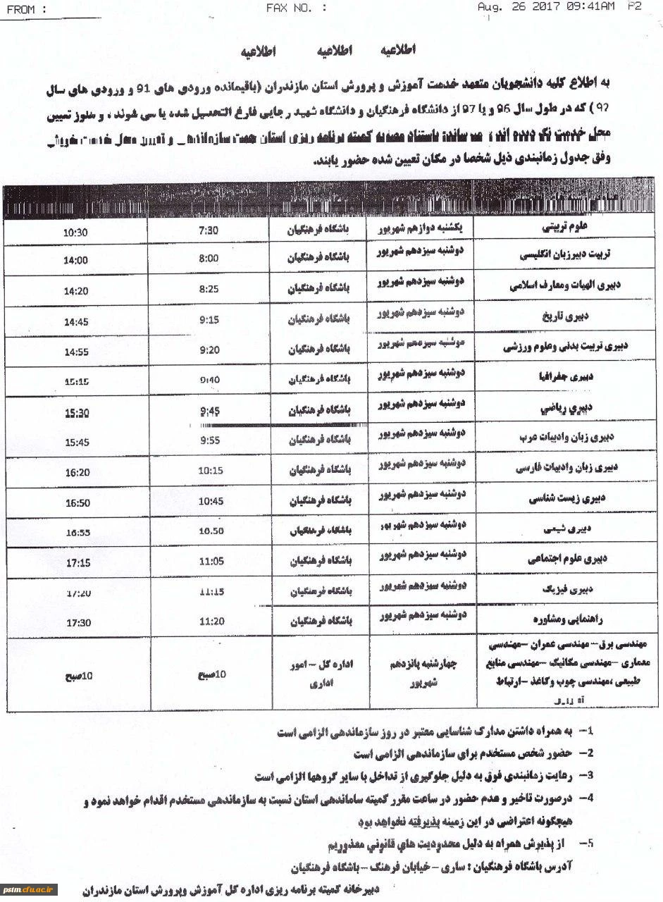 جدول زمانبندی سازماندهی دانشجویان متعهدخدمت استان مازندران (باقیمانده ورودی سال 91 و ورودی های سال 92) 2