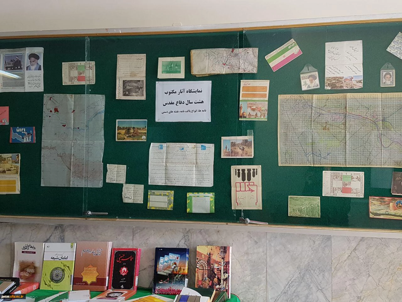 برگزاری نمایشگاه آثار مکتوب هشت سال دفاع مقدس (نامه ها، انواع پاکت نامه ها و نقشه های دستی) و نمایشگاه کتاب ویژه ماه محرم در پردیس 2