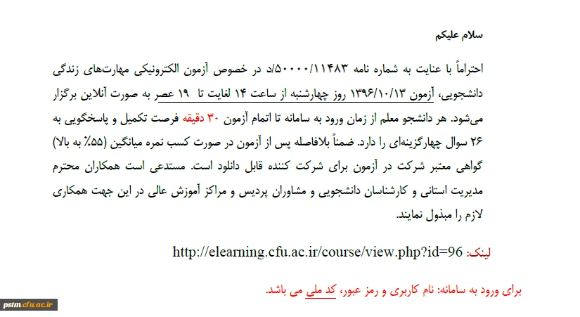 امتیاز دهید : اعلام زمان و نحوه شرکت دانشجویان در آزمون مجازی مهارتهای زندگی دانشجویی 2 سهشنبه 5 دی 1396 ساعت 11:41