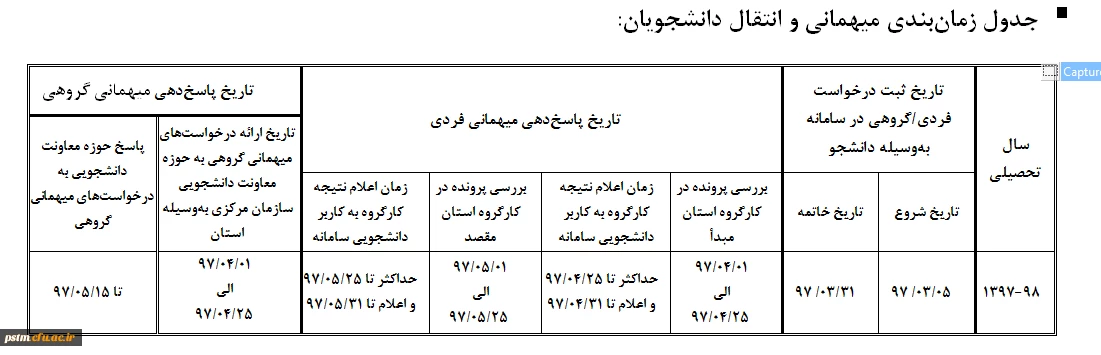 تقویم اجرایی میهمانی وانتقال دانشجویان کارشناسی پیوسته و ناپیوسته برای سال تحصیلی 98-97 5