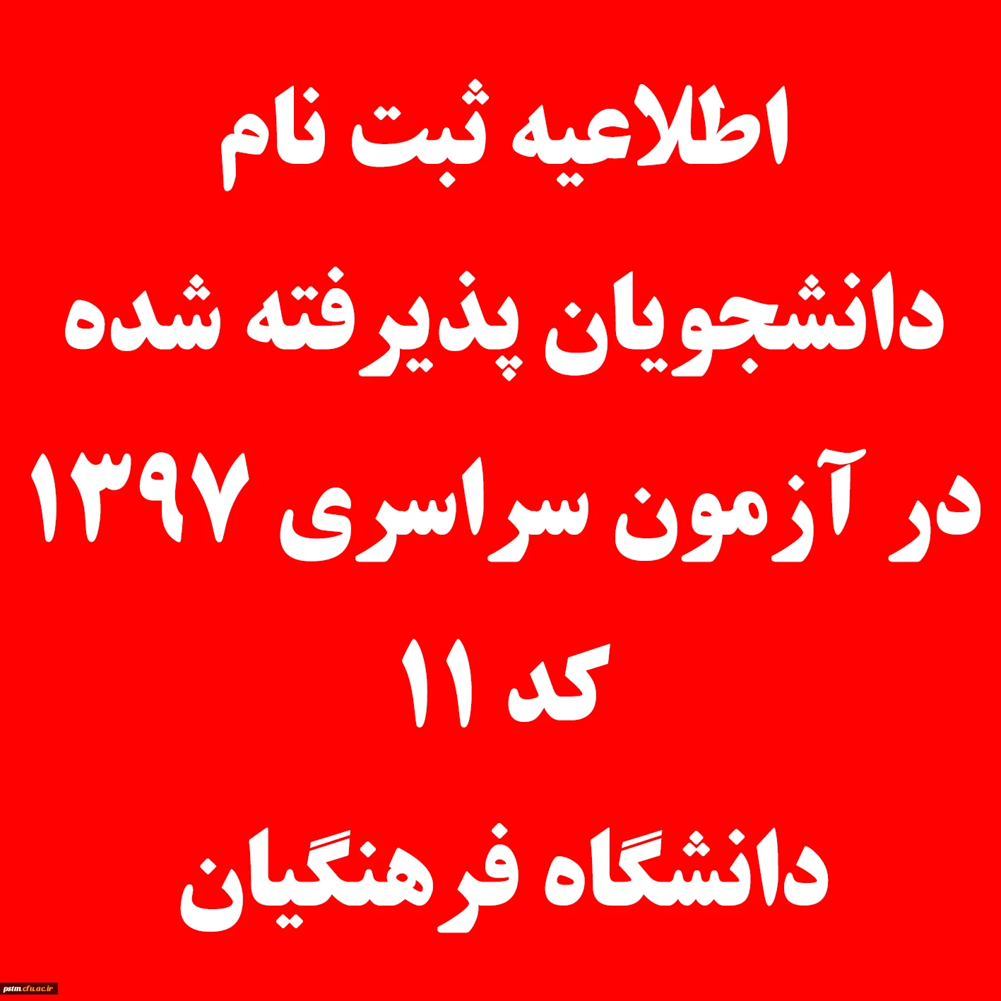 اطلاعیه ثبت نام دانشجویان پذیرفته شده در آزمون سراسری 1397 (کد 11 دانشگاه فرهنگیان)