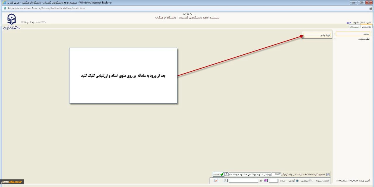 آموزش ارزشیابی اساتید و دریافت کارت ورود به جلسه امتحان در سامانه گلستان