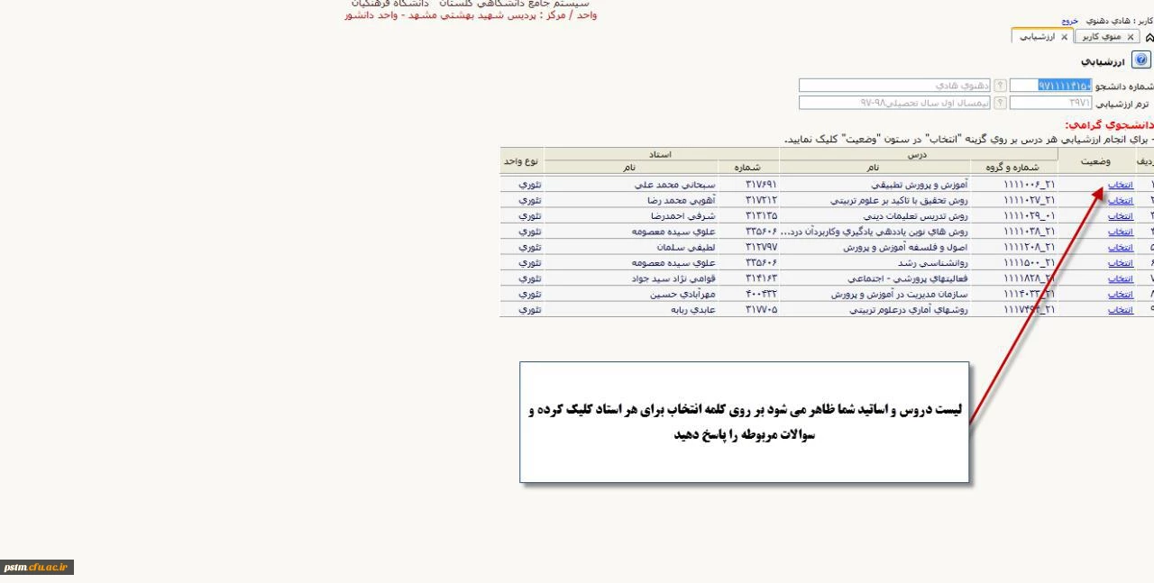 آموزش ارزشیابی اساتید و دریافت کارت ورود به جلسه امتحان در سامانه گلستان