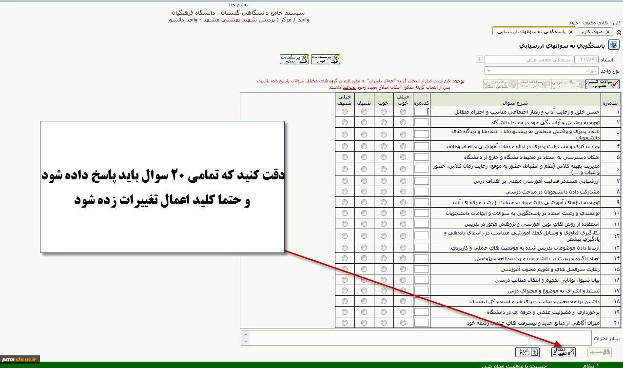آموزش ارزشیابی اساتید و دریافت کارت ورود به جلسه امتحان در سامانه گلستان