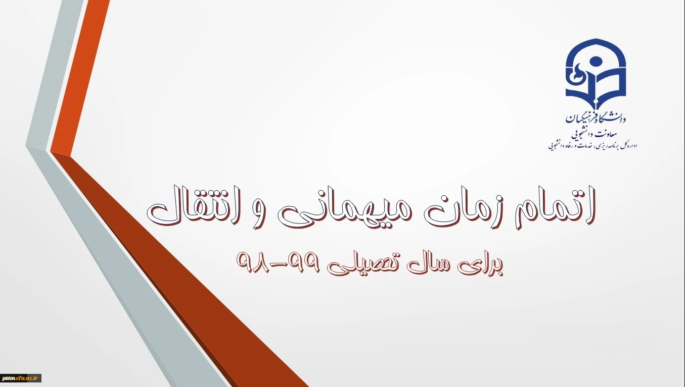 امتیاز دهید : اطلاعیه شماره 7 معاونت دانشجویی: اتمام زمان میهمانی و انتقال دانشجویان 2 پنجشنبه 18 مهر 1398 ساعت 13:50