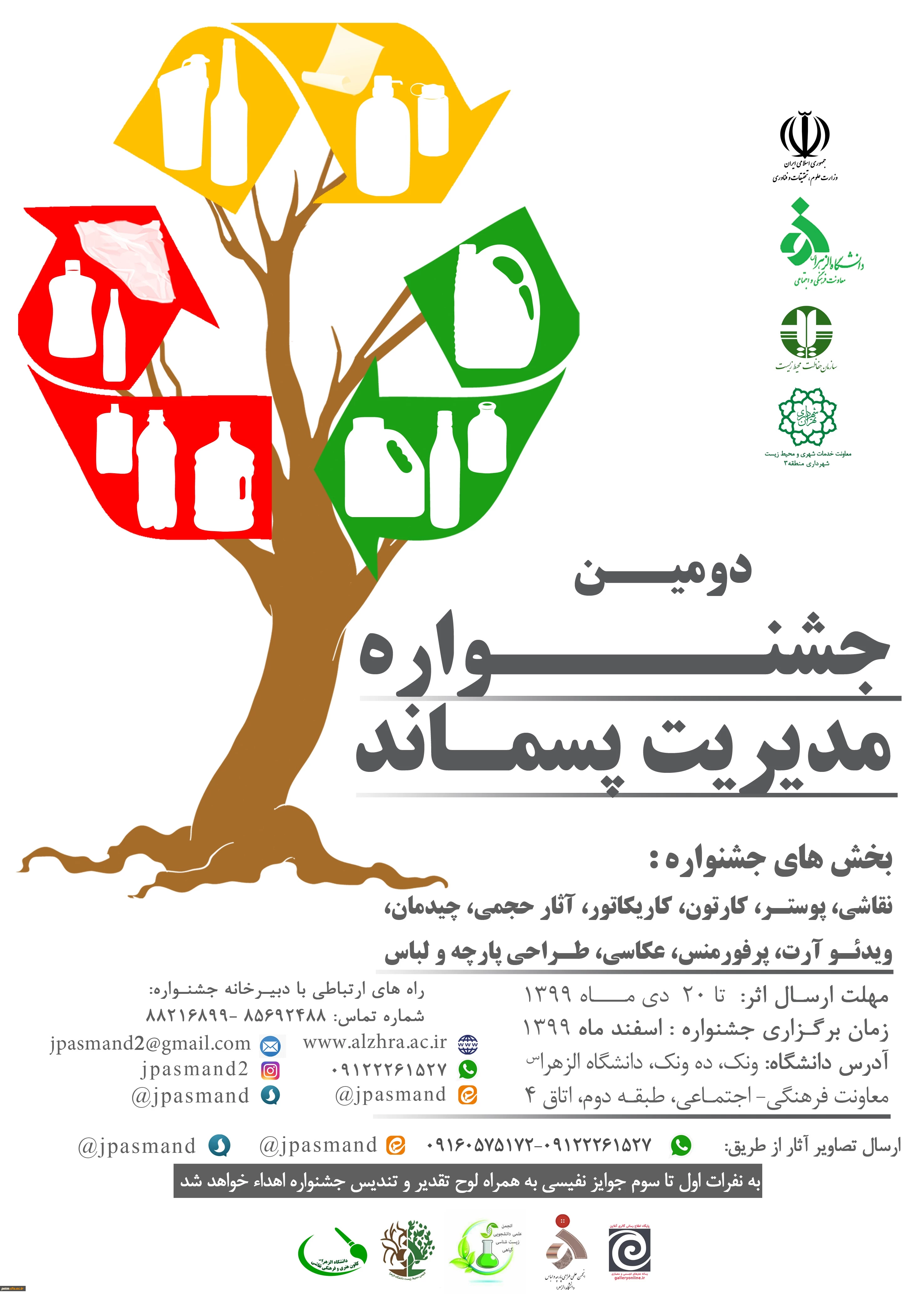 فراخوان شرکت در دومین جشنواره مدیریت پسماند توسط معاونت فرهنگی و اجتماعی دانشگاه الزهرا تهران 2